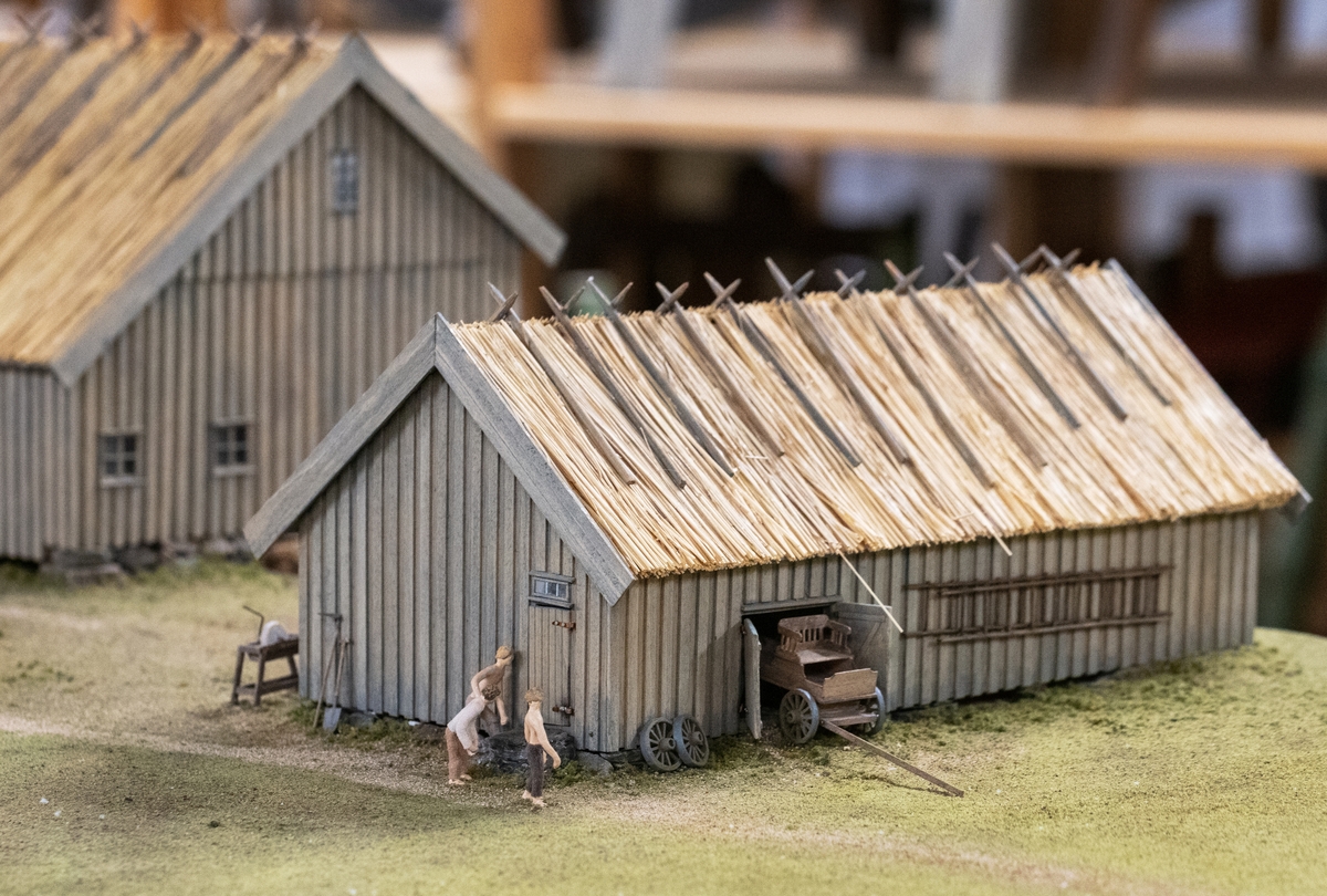 Dalslandsgård. Vinnsäter, Järbo socken. Detalj av modell, redskapsbod