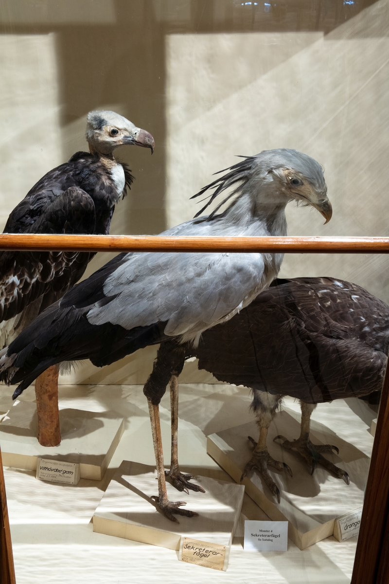 Vänersborgs museum. Afrikanska fågelsalen, sekreterarfågel