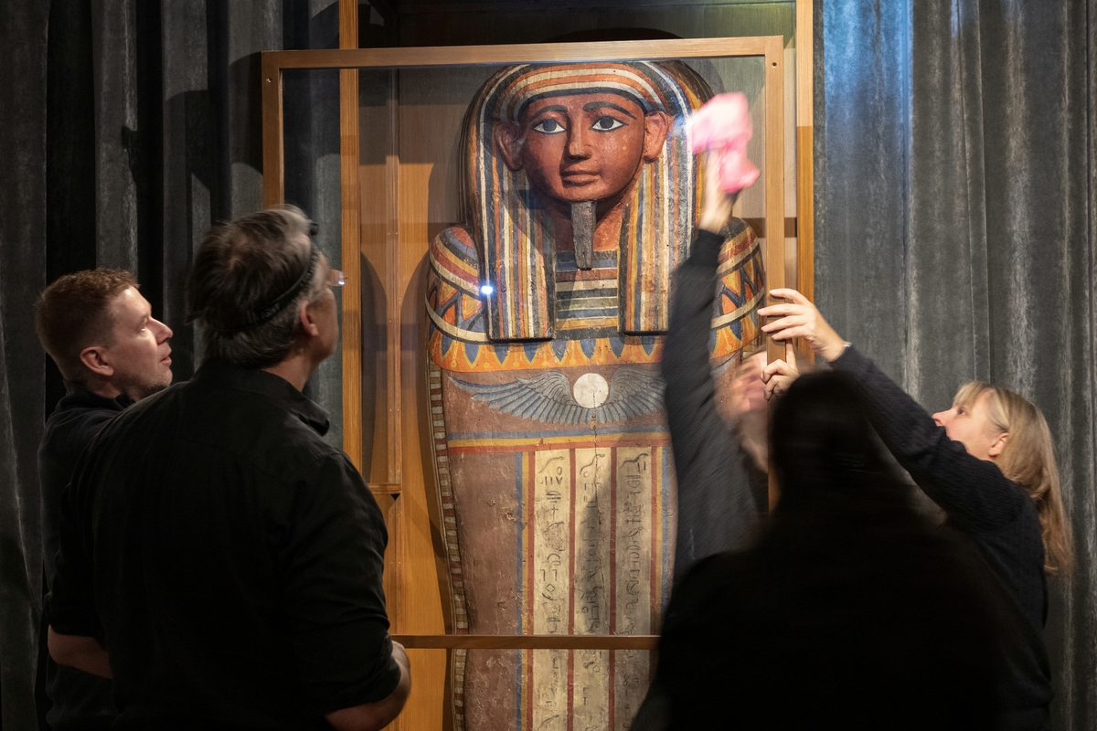 Titel: Vänersborgs museum. Egyptiska kabinettet, utställningsarbete pågår