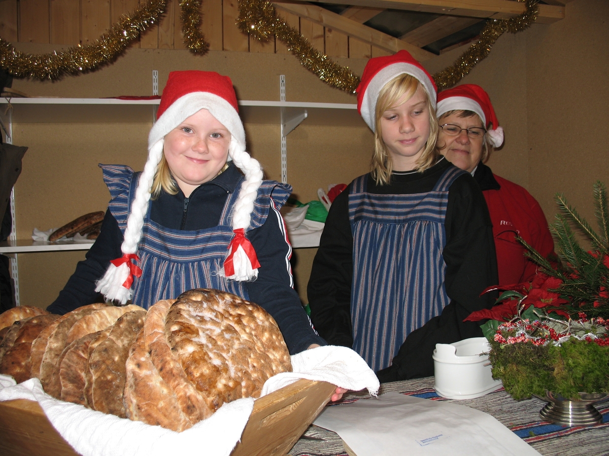 Julmarknad på Vänersborgs museum. Vassända Naglums hembygdsförening säljer bröd.