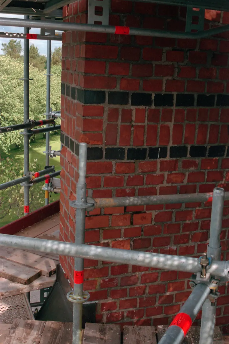 Högsäters kyrka renovering tornfasader 2009, kontrefor, SV från S, plan 2, under renovering