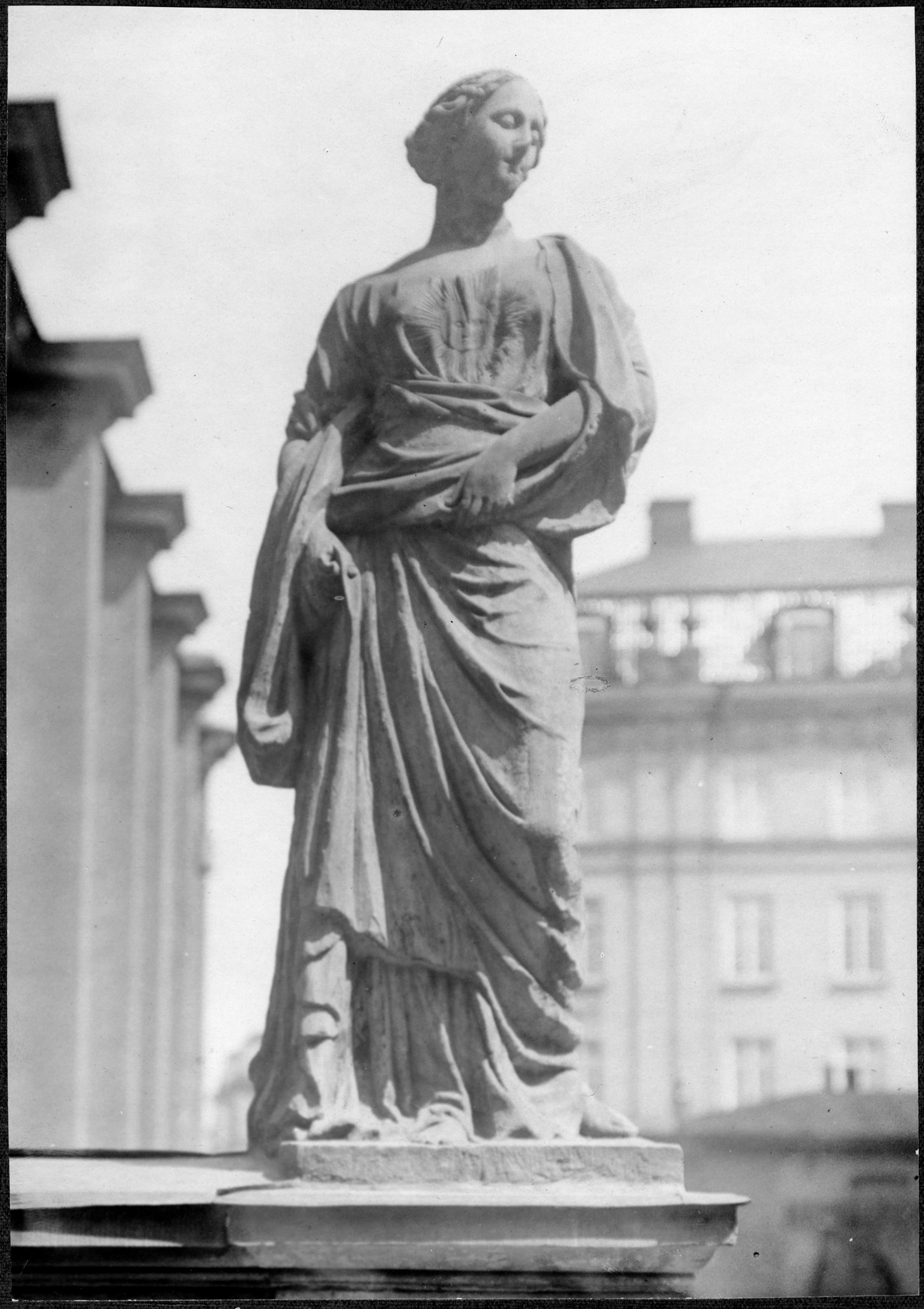 Västra kyrkogårdsingången, allegorisk skulptur föreställande Kärleken, av P. Schultz 1675.