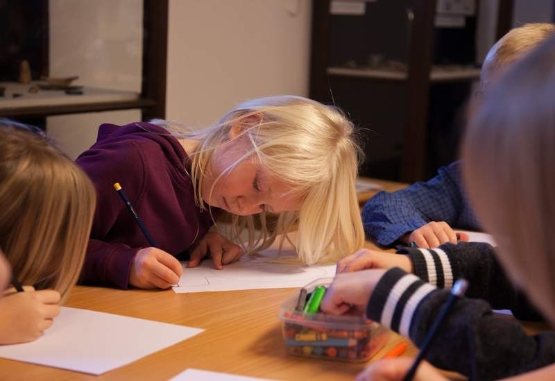 Vänersborgs museums pedagog Jennie Ardin har besök av en skolklass från Rånnumskolan.