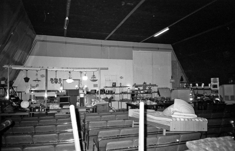 Titel: Ströms Stallar. Interiörer från auktionshall och lagerlokal.