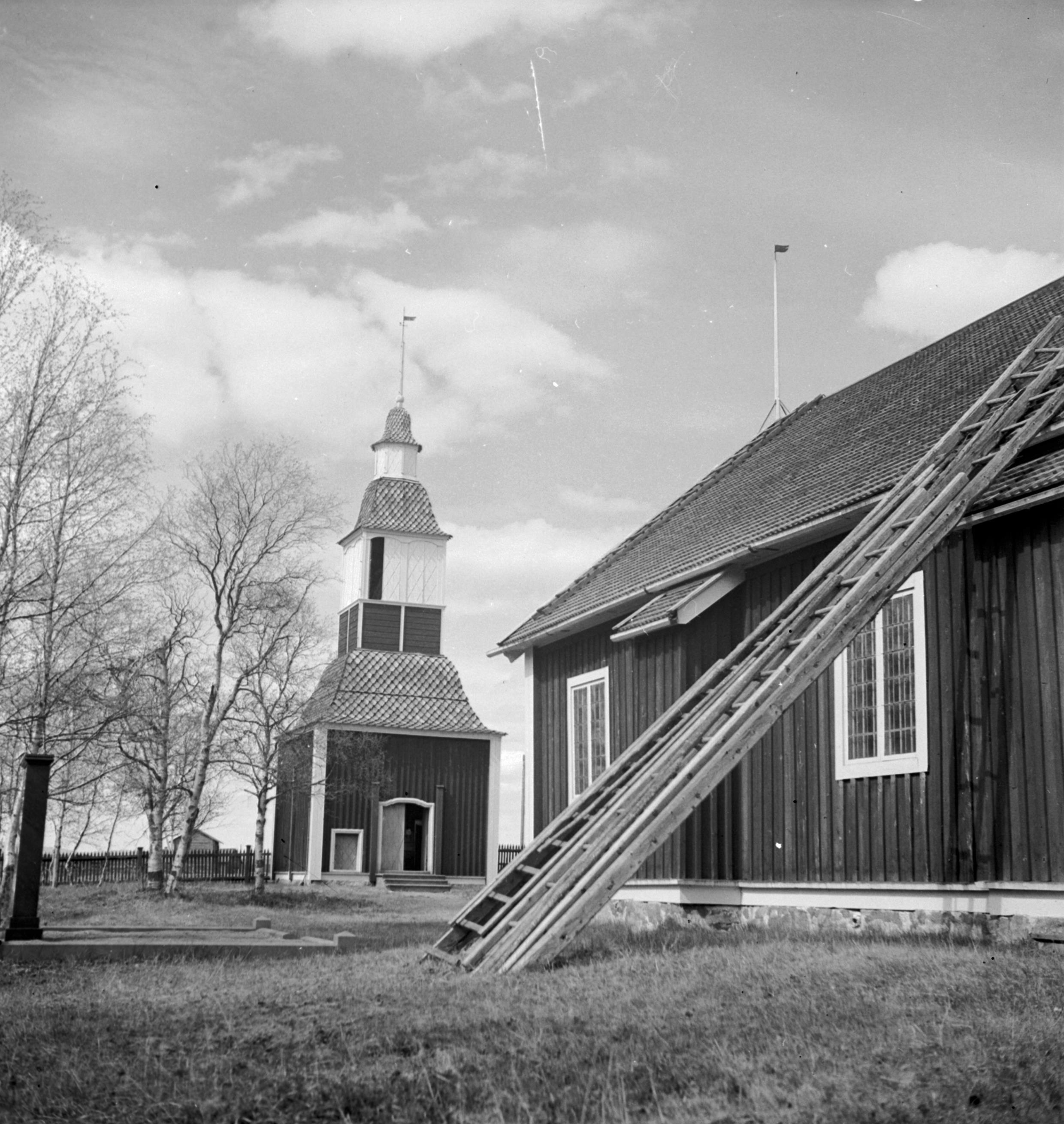Kyrkan och klockstapeln från sydöst.