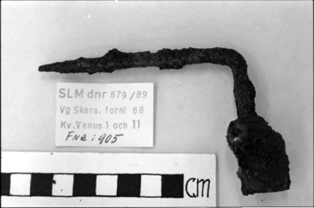 Titel: Föremål före eller efter konservering. Arkeologiska fynd, fornl nr 68, Skara, kv Venus.