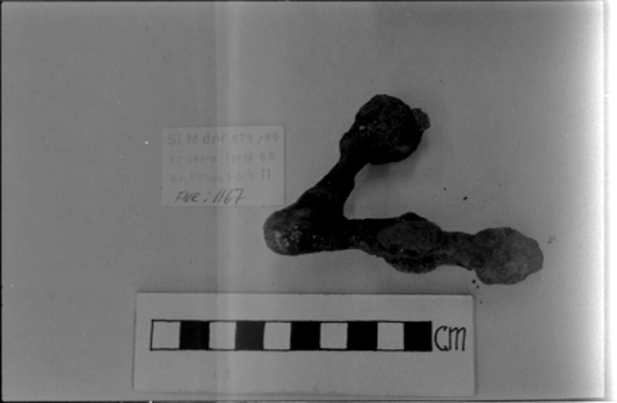 Föremål före eller efter konservering. Arkeologiska fynd, fornl nr 68, Skara, kv Venus.