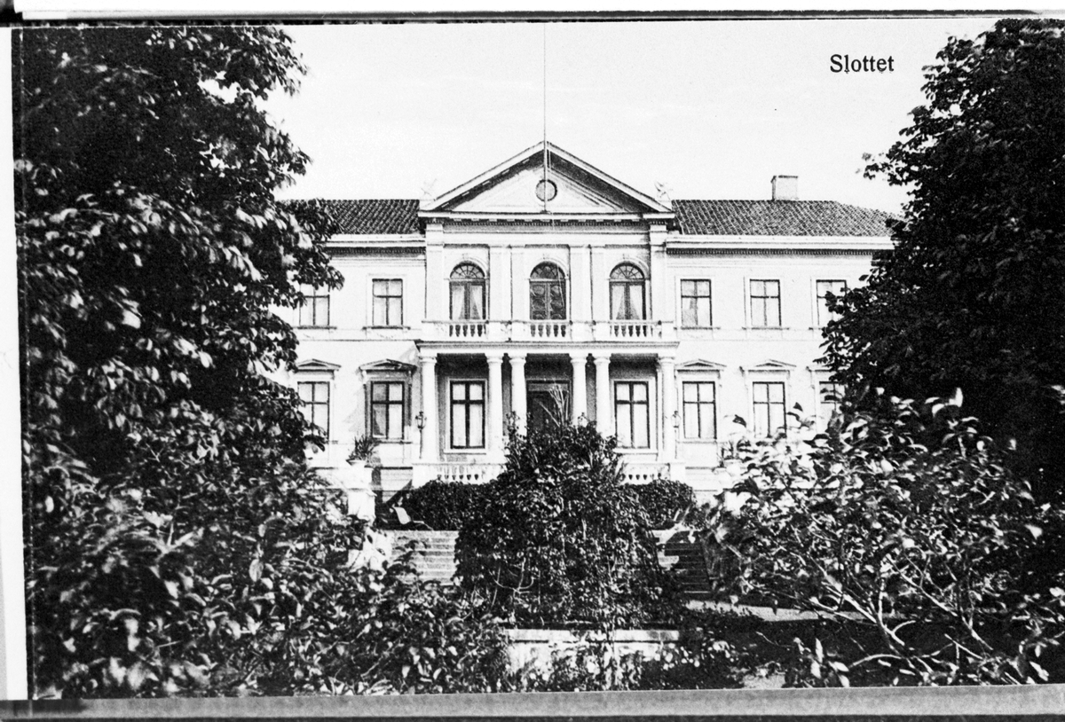 Vykortshäften. Vy genom allén mot slottet och vy från slottsplanen mot slottet. Nääs