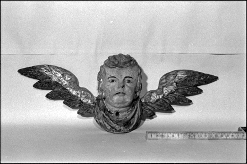 Detaljer från predikstolen före konservering i Borgstena kyrka.