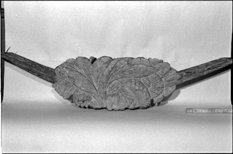 Titel: Detaljer från predikstolen före konservering i Borgstena kyrka.