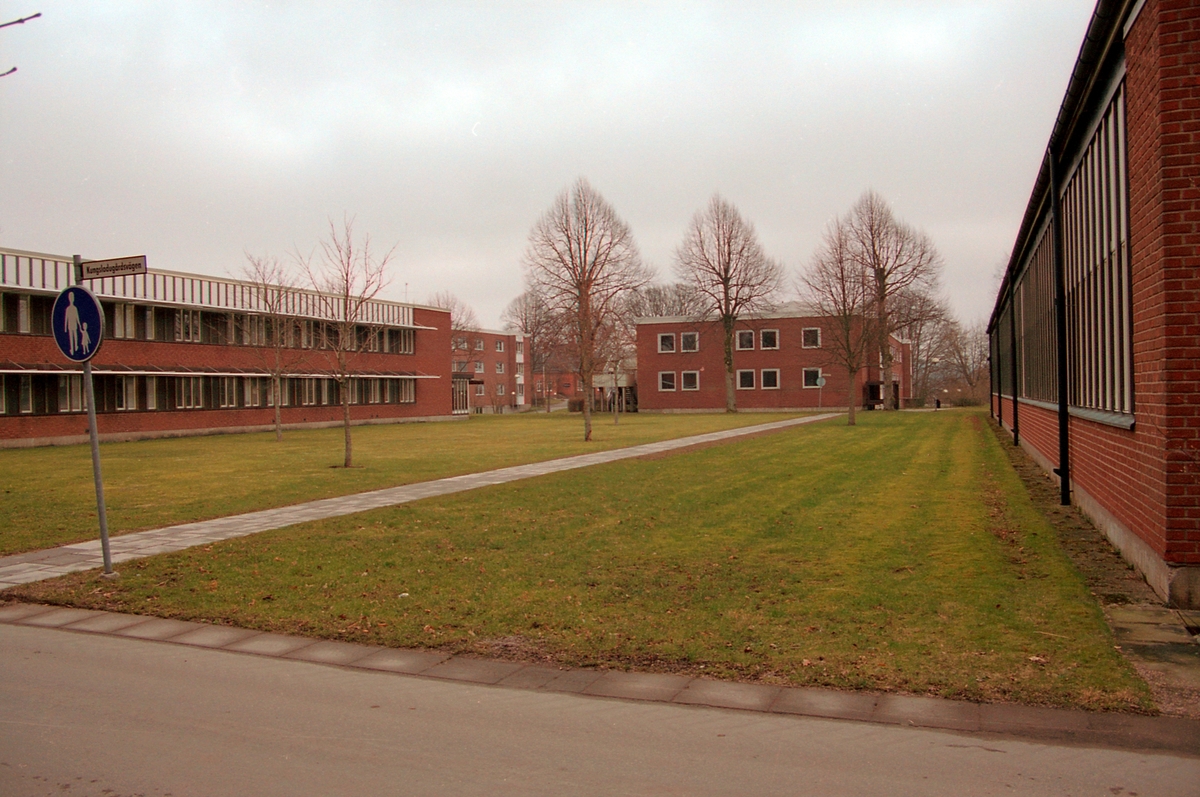 Restad Gård. Parken från hus 7 med Villa Hehrne i fonden.