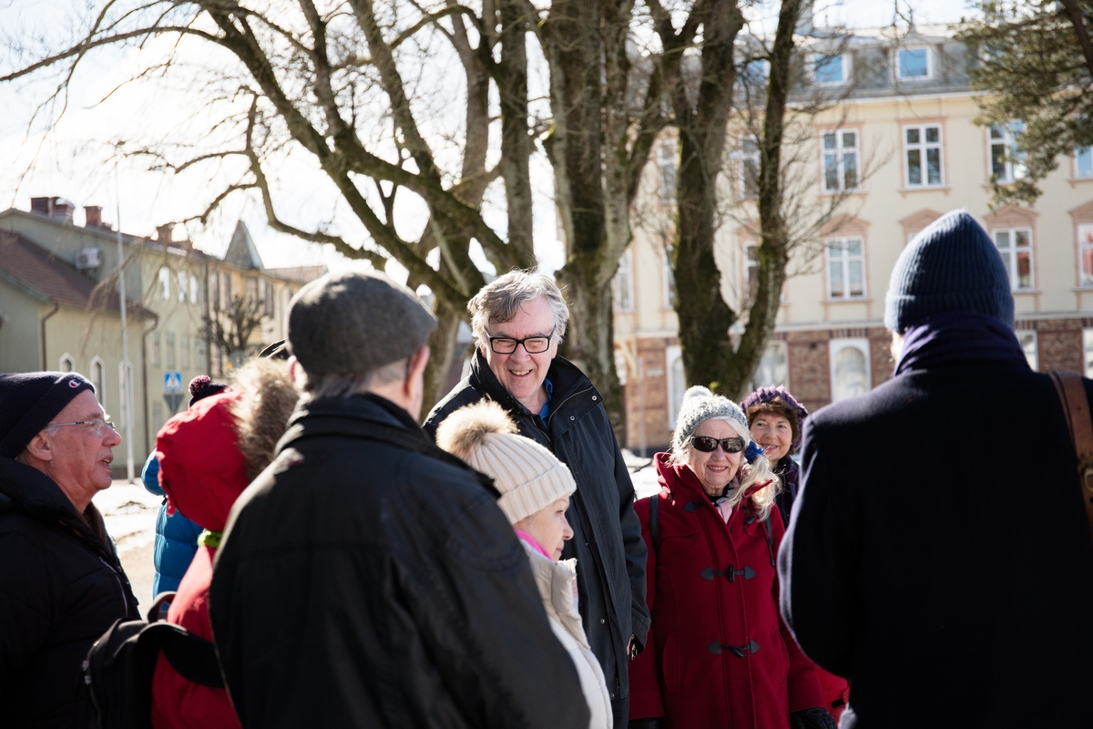 Vänersborgs museum, museets dag 2018. Stadsträdgårdsmästare Hans Wallmander berättar om den nya parken framför museet.