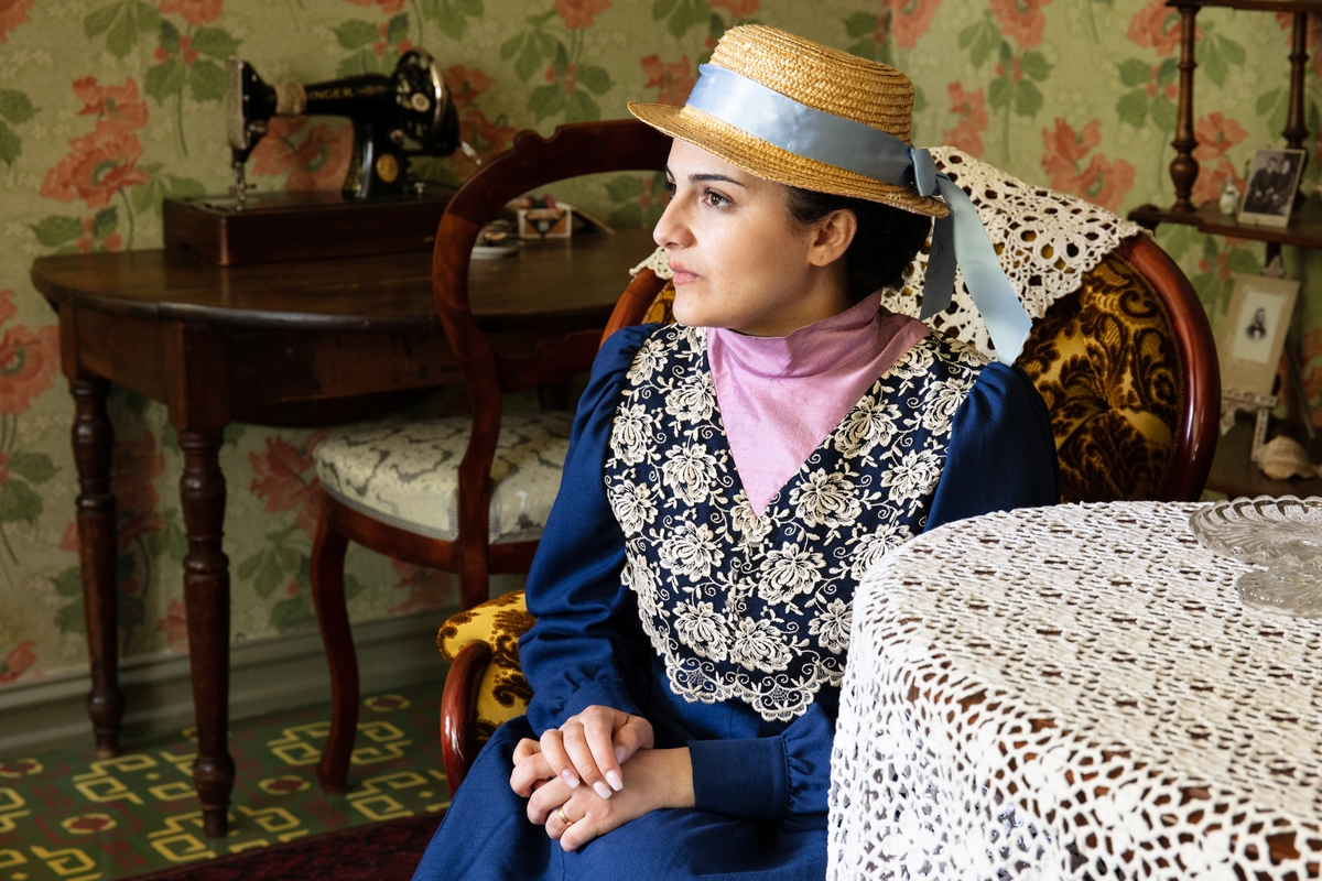 Vänersborgs museum, vaktmästarbostaden. Nur Homsi klädd i sekelskifteskläder