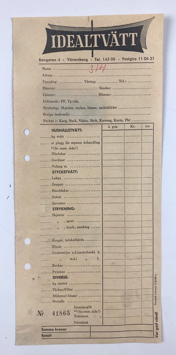 Vänersborg, tvättinrättningen på Reuterskiöldska området. Tvättnota, Idealtvätt