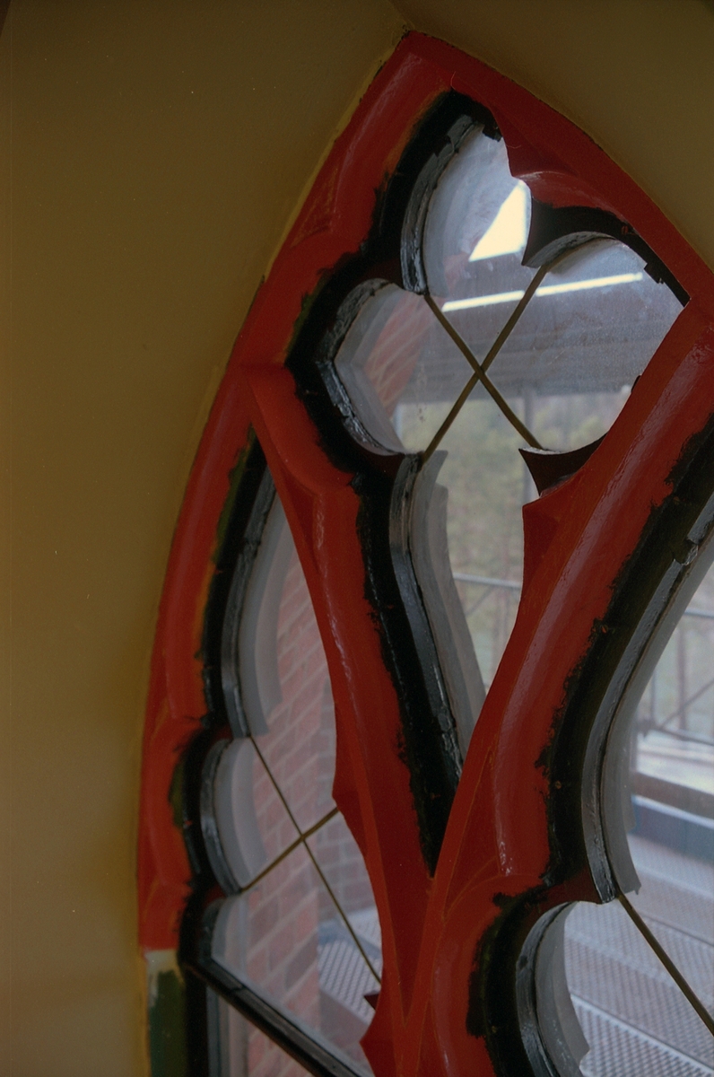 Trollhättans kyrka under pågående renovering, interiör, fönster, norrfasaden, detalj