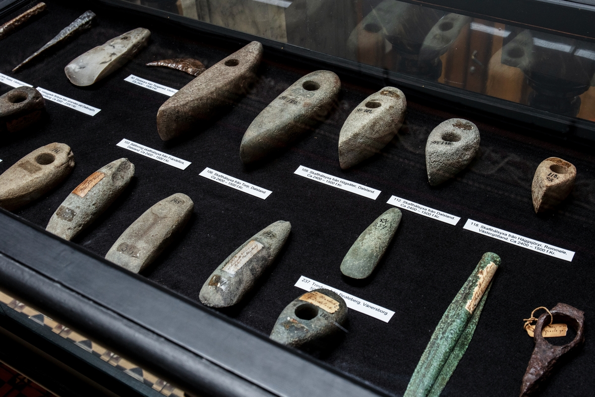 Titel: Vänersborgs museum, trapphallen. Utställning om Vänersborgs läroverks fornsakssamling