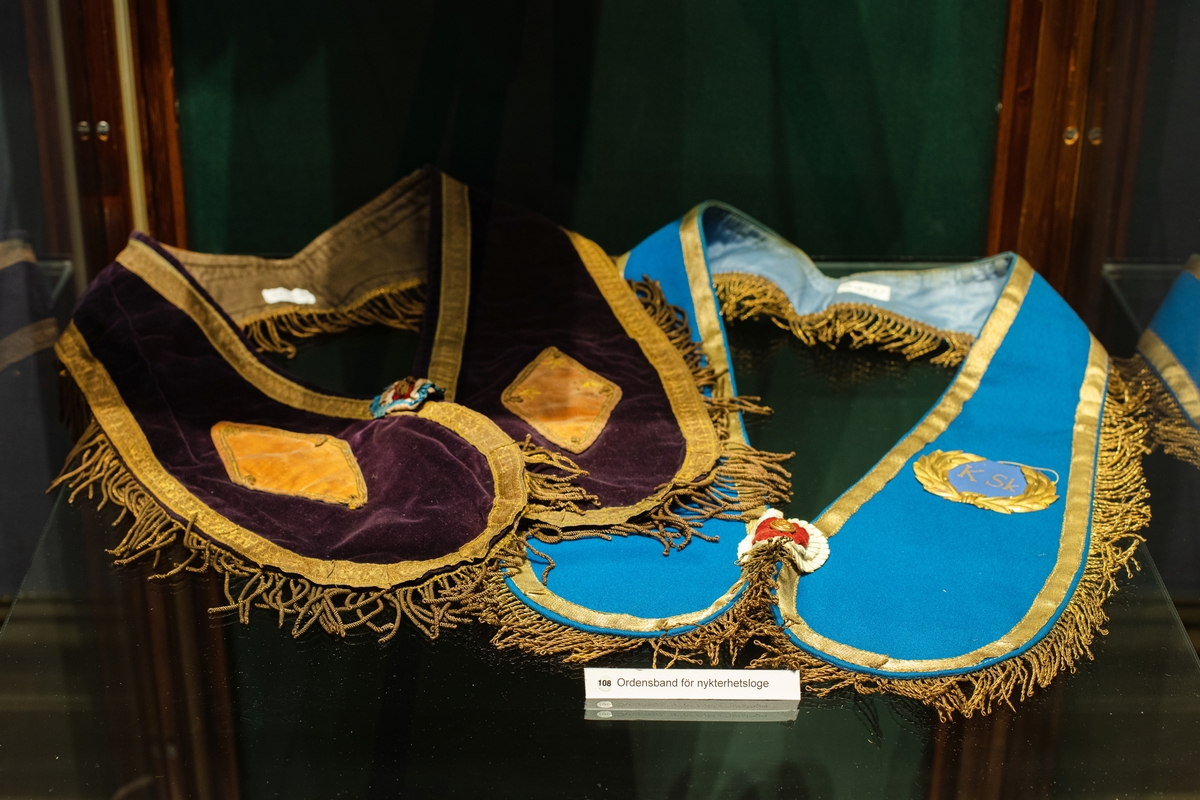 Vänersborgs museum. Tillfälliga utställningen" På kung Oscars tid". Ordensband för nykterhetsloge