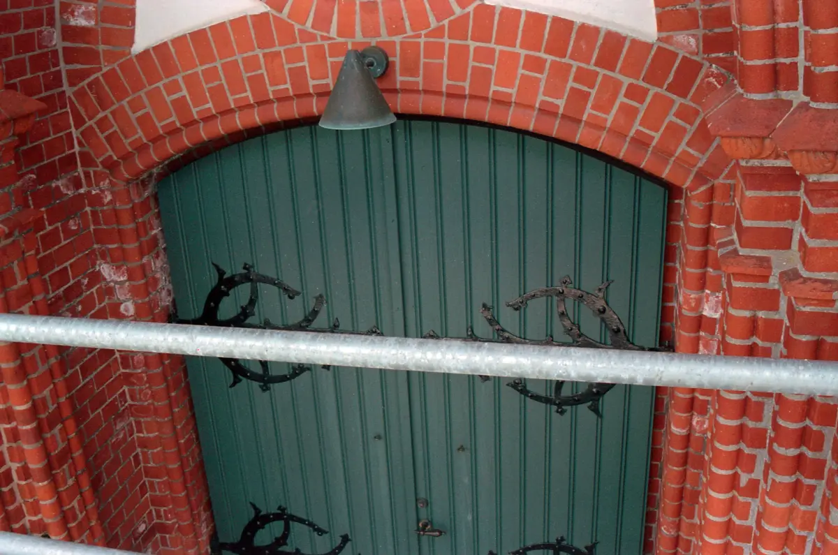 Högsäters kyrka renovering tornfasader 2009, västport, valv, detalj under renovering