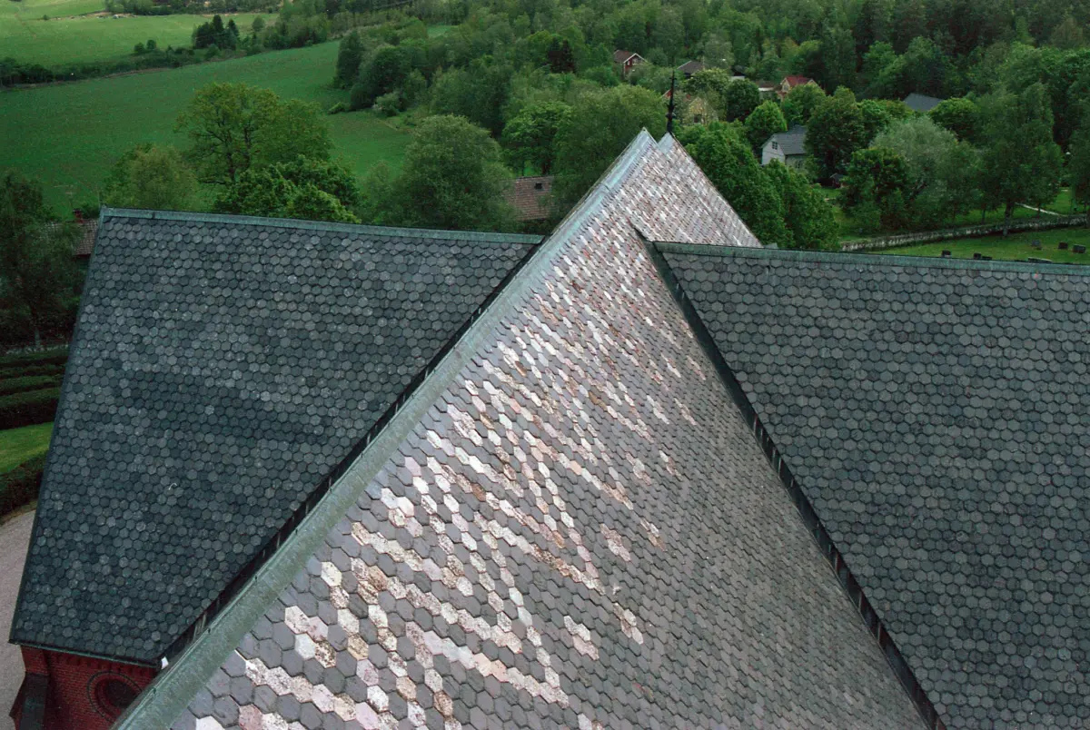 Högsäters kyrka renovering tornfasader 2009, långhustak mot Öster