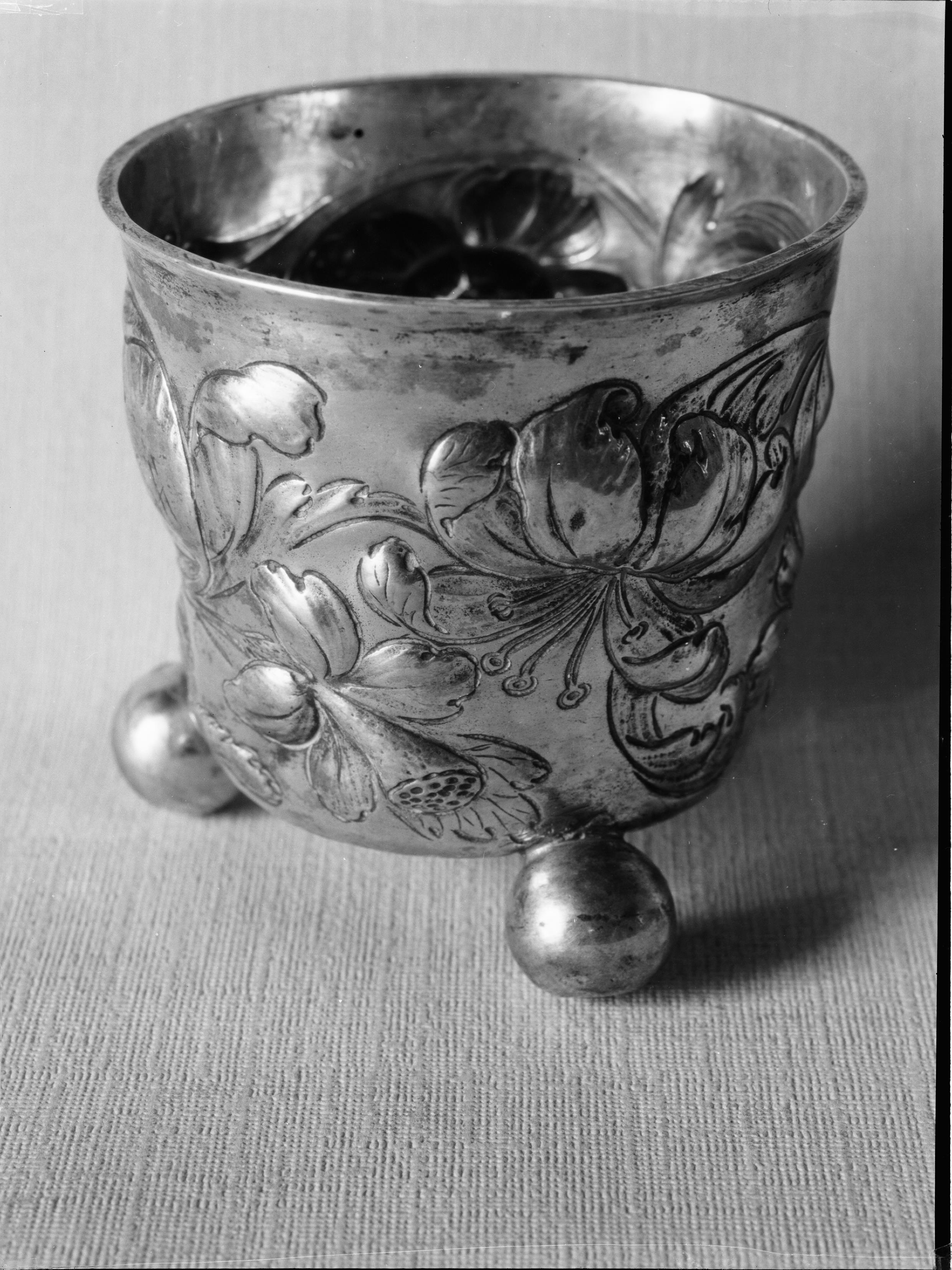 Vinbägare på kulfötter, stämplad Jönköping 1719 av Anders Falk.