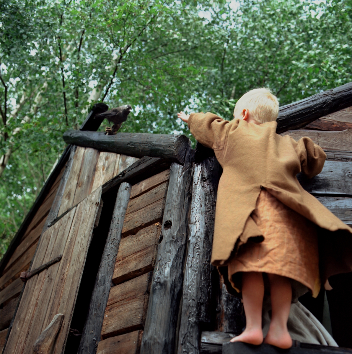 Lösöse museum. Utställning. Mirakelberättelse - gosse sträcker sig efter en fågel.