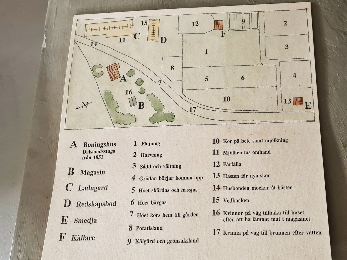 Dalslandsgård. Vinnsäter, Järbo socken. Detalj av modell, informationsskylt