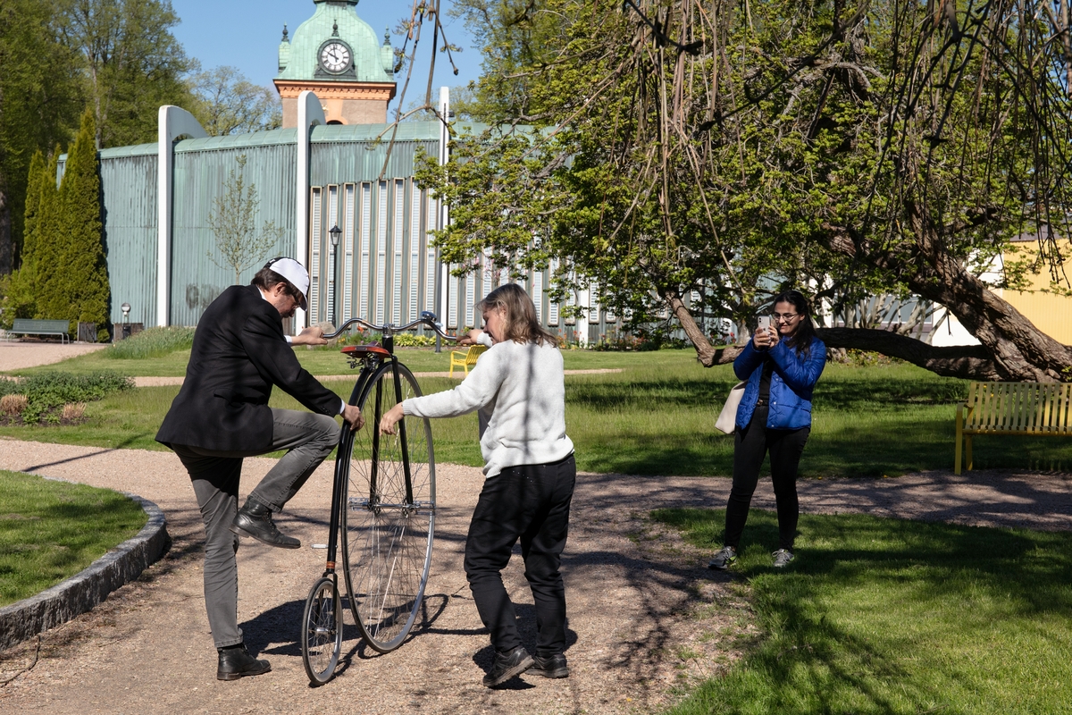Kvarteret Läroverket. På höghjuling i parken framför Vänersborgs museum
