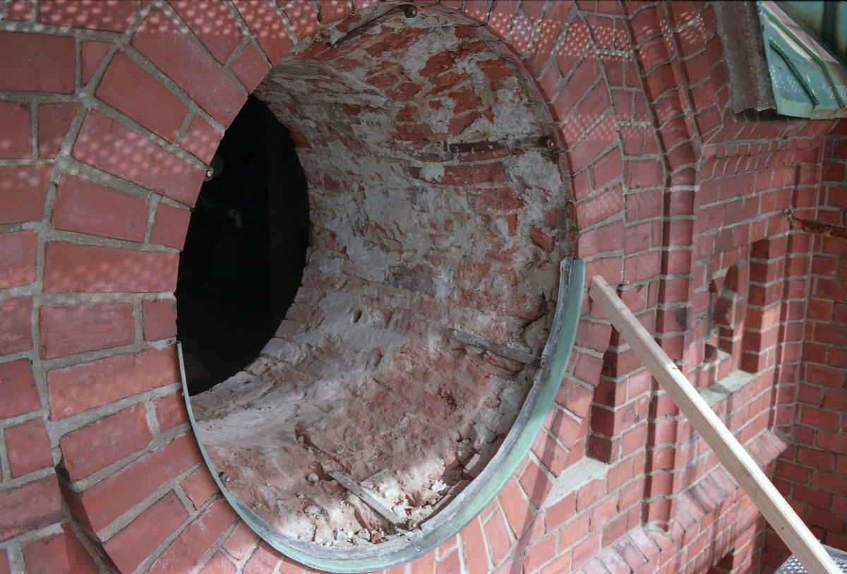 Trollhättans kyrka under pågående renovering, tornur, öppning, västra fasaden