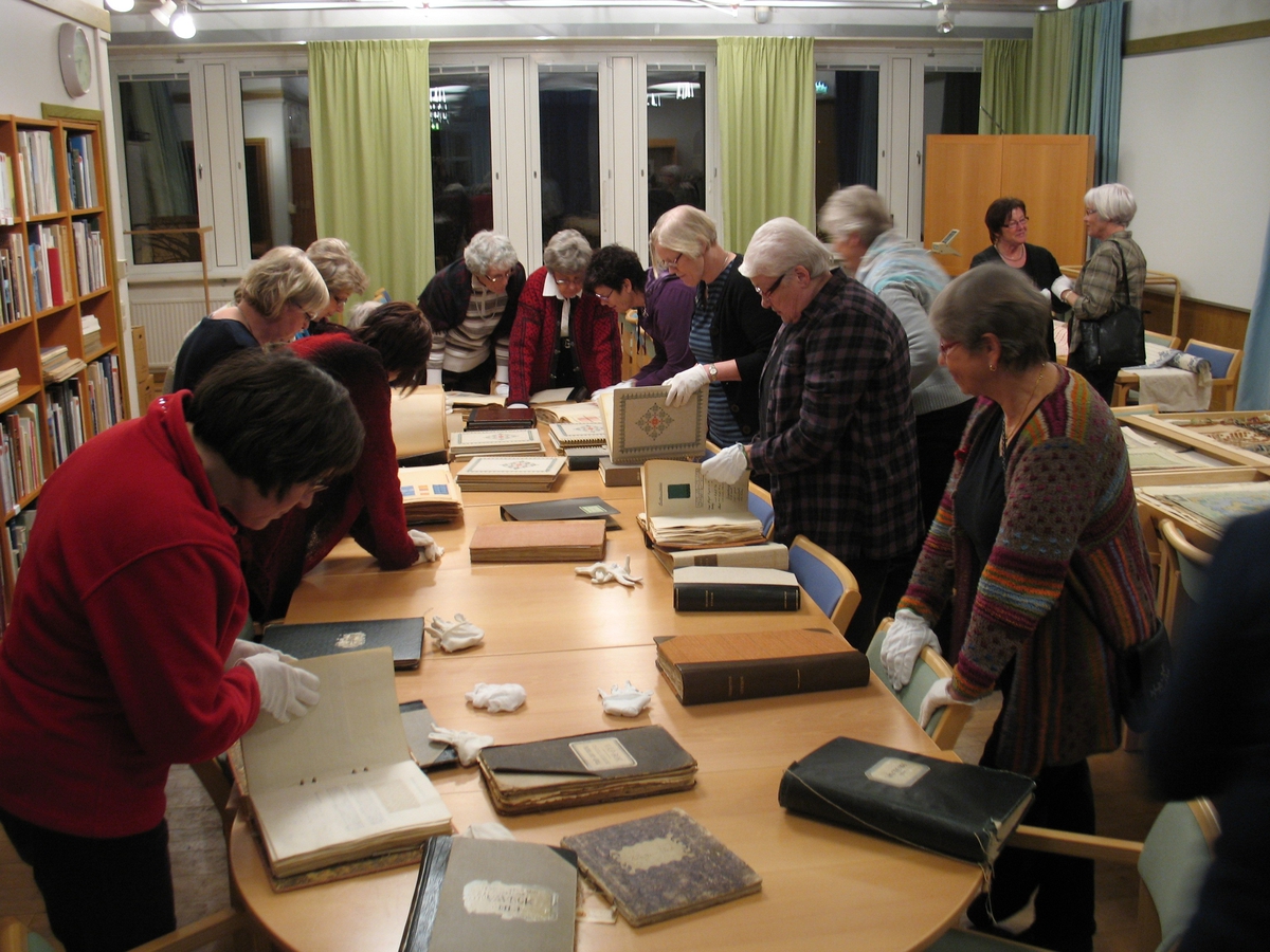 2010-03-08 Föreningen Skytteln på besök på Kulturlagret, Vänersborg. Främst studerades mönsterböcker från Johanna Brunsson.