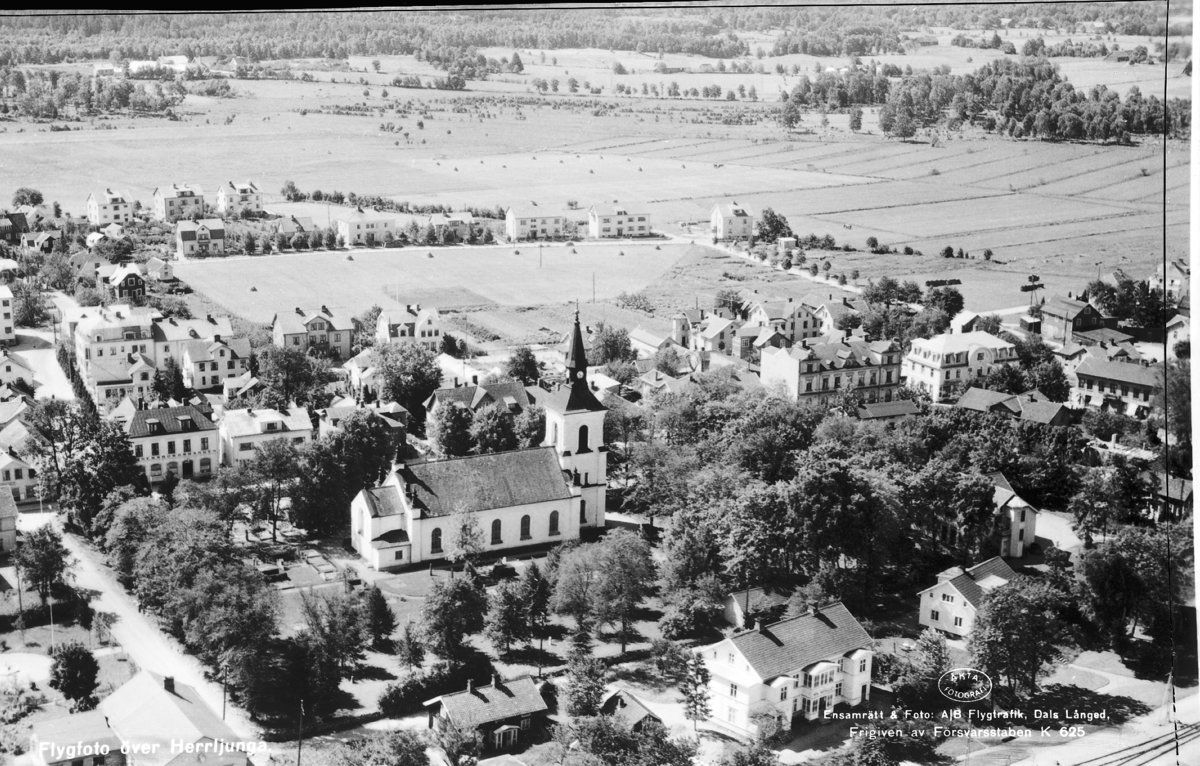 Text på bild:"Flygfoto över Herrljunga" Kyrka