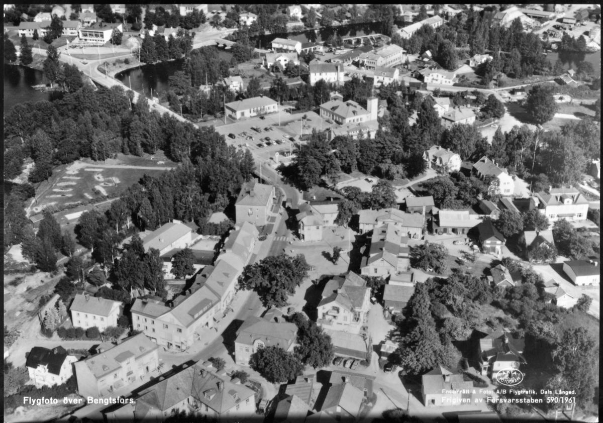 Text på bild: "Flygfoto över Bengtsfors"