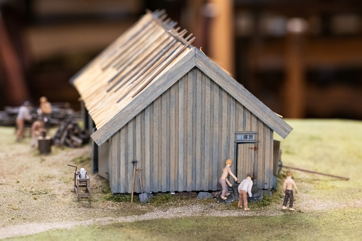 Dalslandsgård. Vinnsäter, Järbo socken. Detalj av modell, redskapsbod