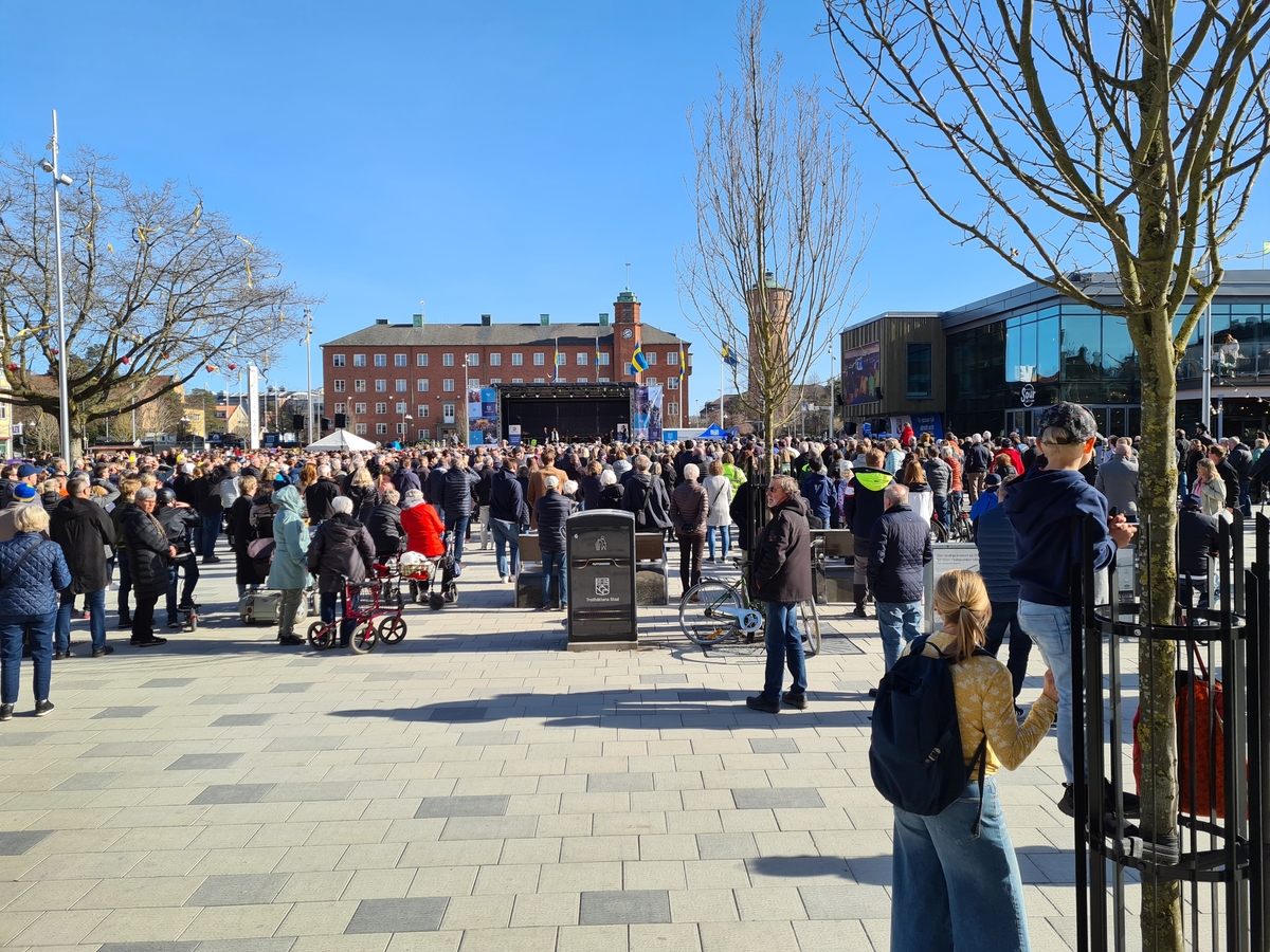 Trollhättan, Drottningtorget. Olympiska mästaren Nils van der Poel firas.