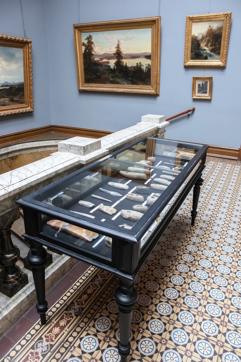 Vänersborgs museum, trapphallen. Utställning om Vänersborgs läroverks fornsakssamling