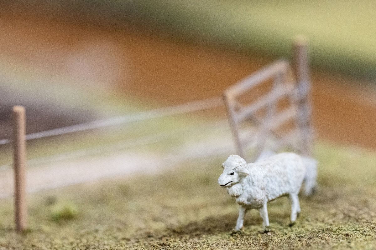 Dalslandsgård. Vinnsäter, Järbo socken. Detalj av modell, får