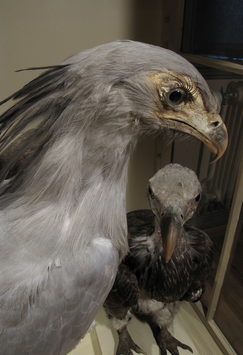 Vänersborgs museum. Afrikanska fågelsalen. Sekreterarfågel och gam.