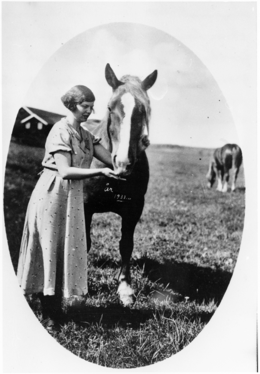 Gärdhem, Skattegården. Kvinna som matar en häst