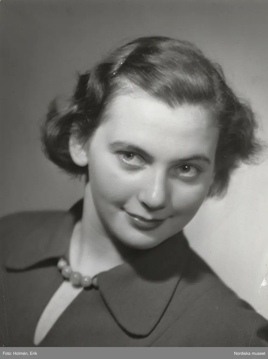 Nordiska Kompaniet. Porträtt av modell. Text på baksidan: "mars 1950".