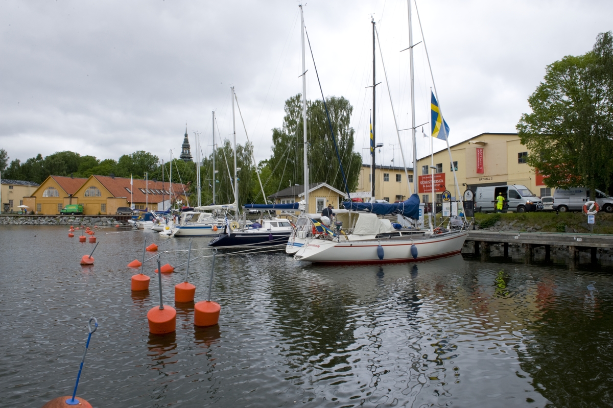 Skyltar på fasaden "Kungliga båtar" och"Sjöhistoriska på Galärvarvet"