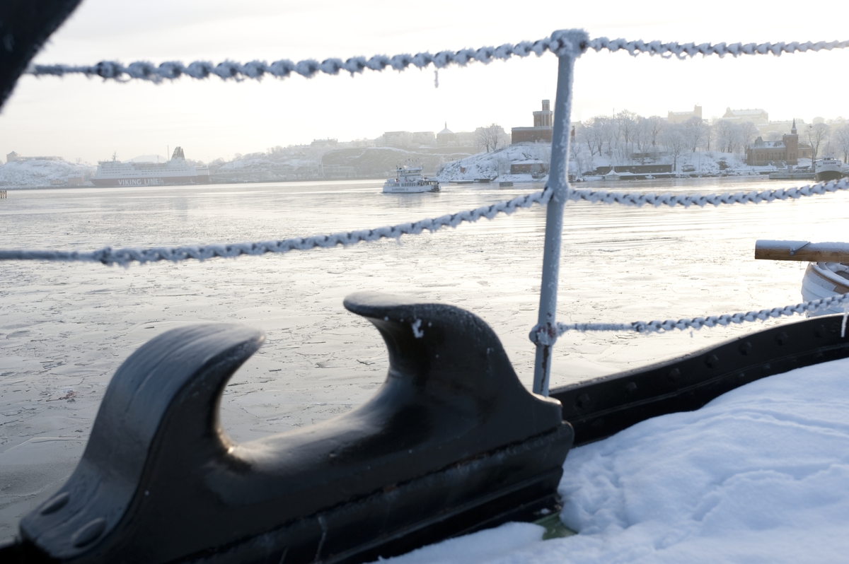 Isbrytaren Sankt Erik. Detalj av reling med halkip.