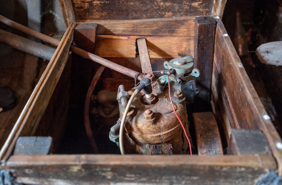 Titel: Fiskebåt som användes för flykt från Odensholm, Estland den 4 februari 1944. En familj på fyra personer färdades i båten som ankom Hangö, Finland och sedan togs vidare till Sverige.