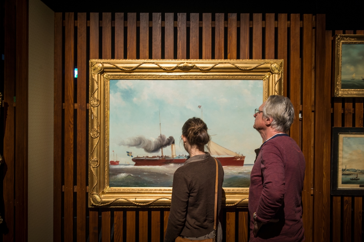 Utställning "Älskade skepp" på Sjöhistoriska, tavlor från museets samlingar.