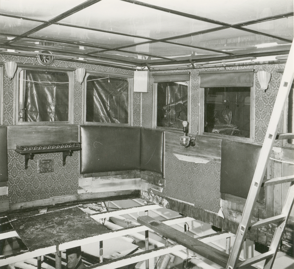 Matsalsrestaurering fördäck, matsalsdurk bortmonterad.