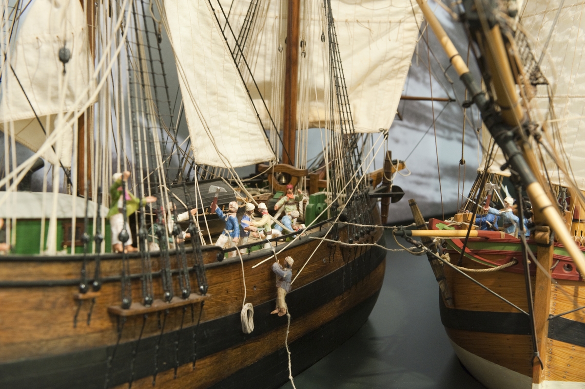Små dockor tillverkade att passa modeller till utställningen "Shipping Shopping