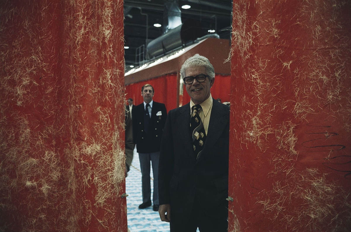 Konstruktören Per Brohäll vid invigningen av Albin Marins anläggning i Kristinehamn (Gustavsvik).