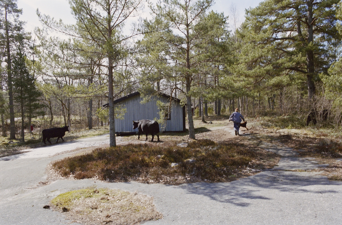 Kor av rasen Aberdeen Angus. Martina Högberg vid Stugbyn.