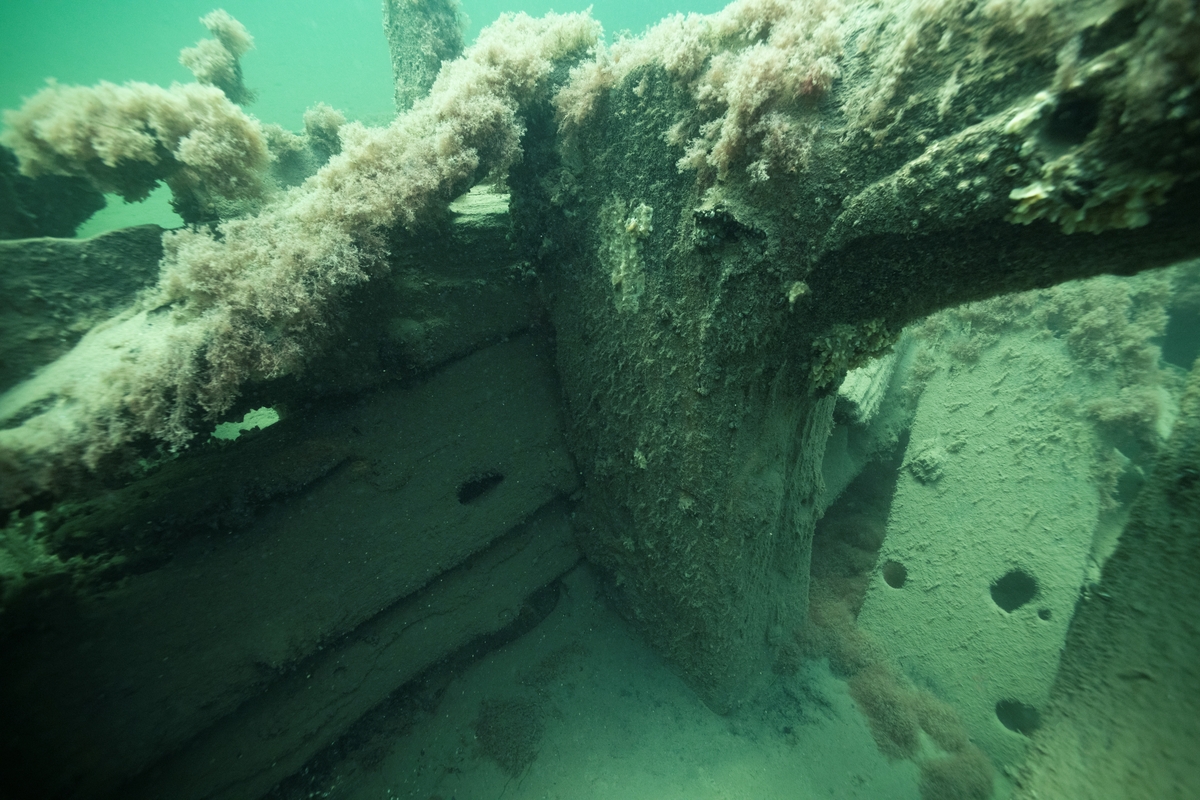 Ett av skeppets knän och en balkvägaren som sitter längsgående i skrovet. Balkvägaren är