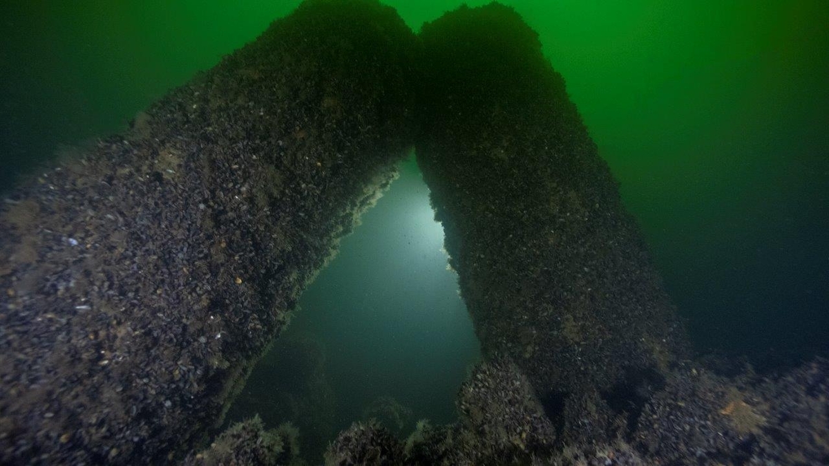 Två rökgångar (skorstenar, ovanpå ångpannorna), som senare bör ha gått ihop i en skorsten utanpå fartyget.