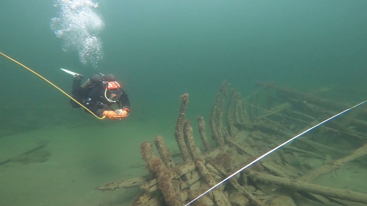 På insidan av babordssidan påträffades sten. Notera även innergarneringen.
