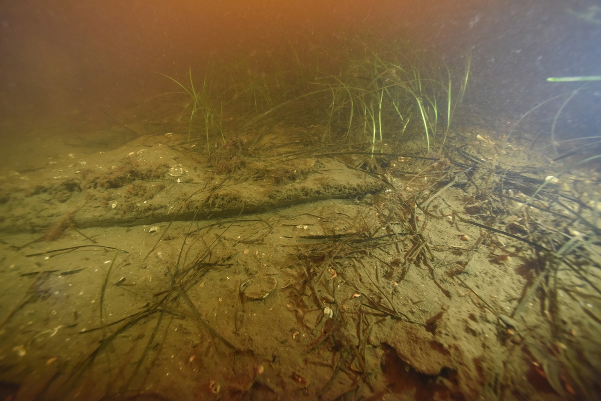 Skeppstimmer som sticker upp några centimeter ur botten i området invid ID 5 i Bojarkilen.